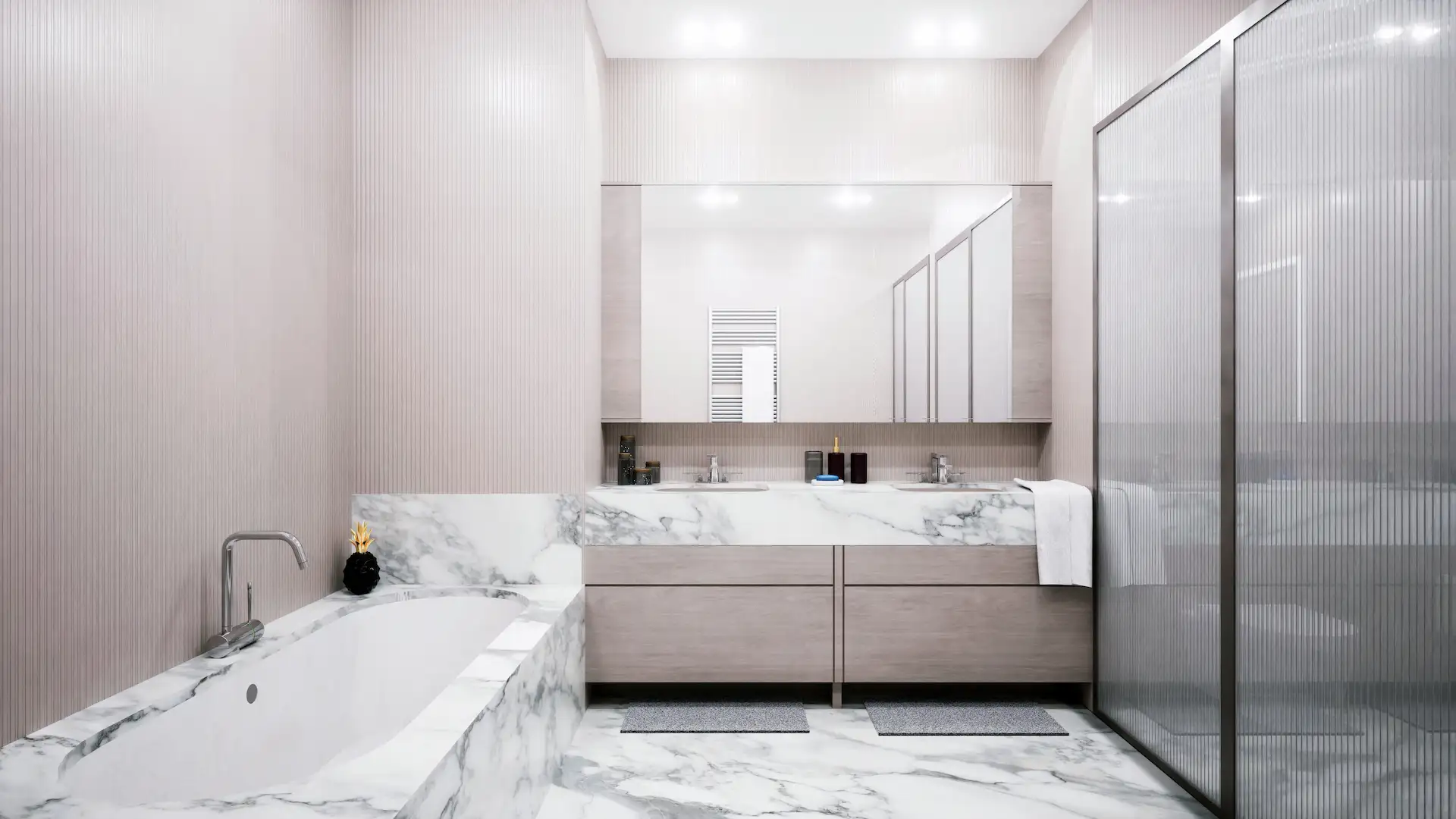 L’attività ha riguardato lo sviluppo di diverse tipologie di bagni all’interno degli appartamenti, con attenzione alla coerenza progettuale e alla qualità del dettaglio.