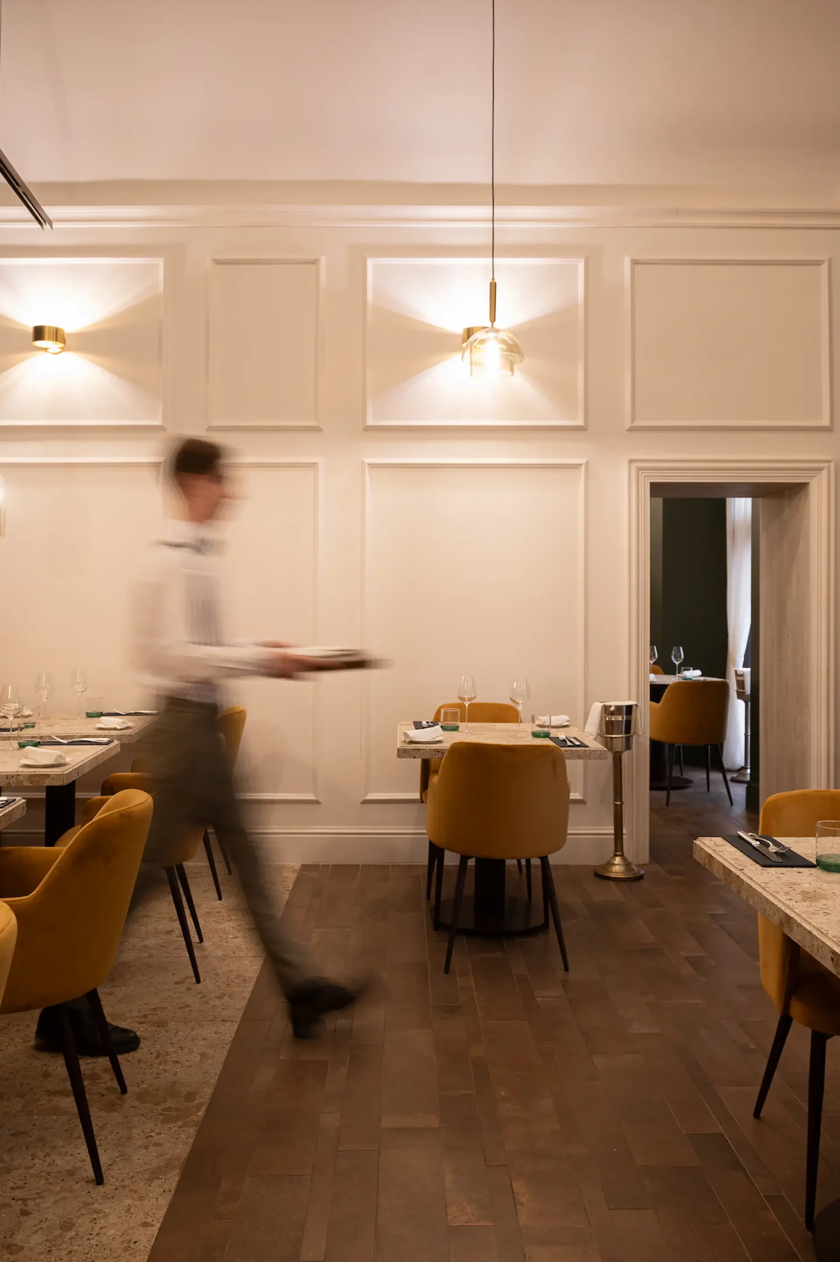Anche l’acustica e la percezione del comfort diventano parte del racconto, per permettere conversazioni private pur in un luogo vivo e condiviso.