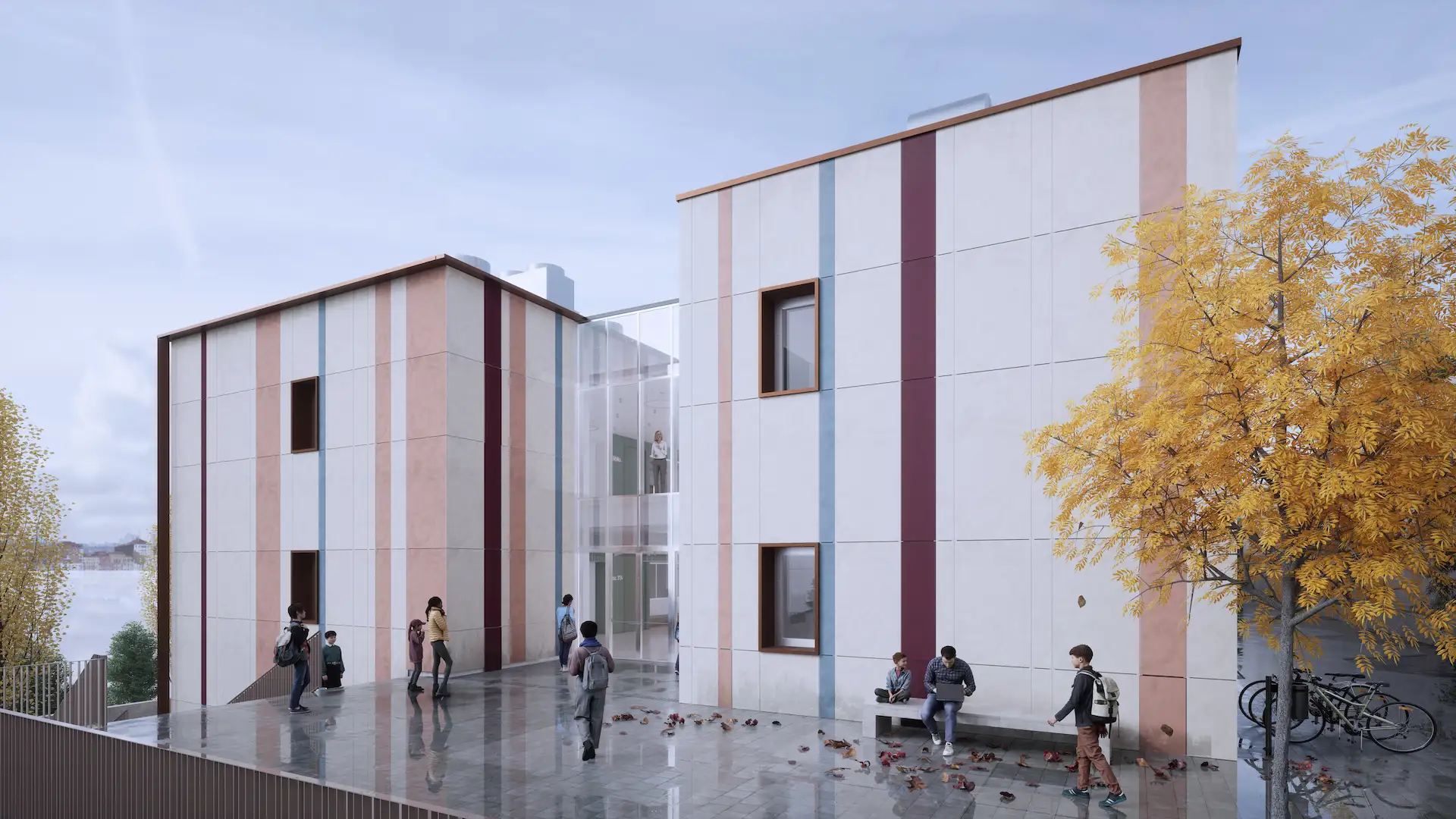 Gli spazi esterni, integrati al progetto, diventano estensioni dell’attività didattica e occasioni di socialità, contribuendo a costruire una scuola più accogliente e connessa al quartiere.